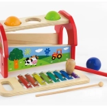 Ta lesena igra s kladivcem in ksilofonom združuje aktivno igro z odkrivanjem glasbe. Otroci kroglice zabijajo skozi odprtine, spremljajo njihov gib in nato na barvnih lamelah ksilofona iztapkajo preproste melodije. Tako na nevsiljiv način vadijo natančnost, ritem in potrpežljivost.