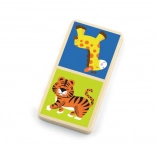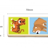 Odkrijte barviti svet živali z lesenimi dominami, zasnovanimi tako, da združujejo zabavo in učenje v enem. Vsak košček domine ima na eni strani čudovito ilustracijo različnih divjih živali, kar otrokom pomaga pri spoznavanju sveta okoli nas.