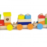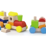 Leseni vlakec z barvnimi kockami za prelaganje