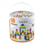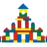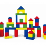 Lesene kocke različnih oblik in velikosti omogočajo ustvarjanje raznovrstnih zgradb, kot so hiše, stolpi ali mostovi.