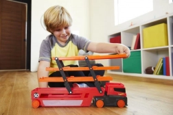 Z Mega Transporterjem Hot Wheels boste uživali v izjemni igri, bodisi doma ali na poti. Ta velik transporter ponuja neverjetne možnosti: