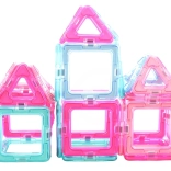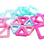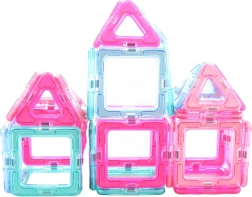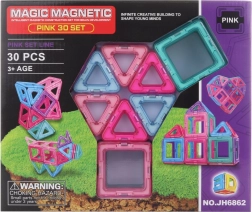 Uživajte v urah ustvarjalne zabave s to magnetno sestavljanko. Set vsebuje 30 kosov, ki jih je mogoče zlahka povezati z magnetnimi robovi. Pisani deli v rožnati, modri in turkizni barvi so prosojni in ustvarijo impresiven videz pri sestavljanju različnih 3D objektov.