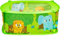 Ograjen prostor z dnom in 50 žogicami – ni za vodo, približne dimenzije 75 cm × 75 cm × 30 cm. V paketu je 50 žogic. Bazen lahko uporabite doma v otroški sobi ali poleti zunaj na vrtu. Otroci se bodo ob igri zelo zabavali. Starost 6m+