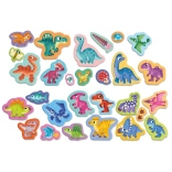 V pakiranju najdete 28 podrobno izdelanih magnetov s priljubljenimi dinozavri. Zaradi 4 mm debeline jih otroci zlahka primejo, zlagajo in prestavljajo. Peneast material je lahek in prijeten na dotik, primeren za vsakodnevno igro doma in v vrtcu.