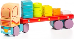 Lesena sestavljanka CUBIKA Tovornjak z geometrijskimi oblikami je več kot le igrača. Z 19 barvnimi deli se lahko otroci učijo razvrščati oblike in barve, kar razvija njihove senzomotorične sposobnosti. Vsak del je zasnovan tako, da se prilega drugim, bolj izkušeni graditelji pa lahko pravilnost števila zloženih delov preverijo po številkah na podvozju tovornjaka.