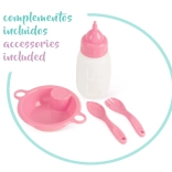 V kompletu je pladenj s stekleničko in priborom ter spodnja shranjevalna košara za potrebščine med hranjenjem.