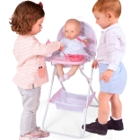Del kompleta je jedilni pladenj z ljubkimi dodatki (steklenička, pribor) ter praktična shranjevalna košara v spodnjem delu. Mere 65 × 32 × 42 cm (v × š × g) in višina do pladnja 50 cm zagotavljajo udobno uporabo za otroke. Kakovostna izdelava znamke DeCuevas navduši z dolgo življenjsko dobo in varno zasnovo.