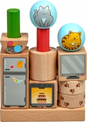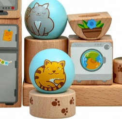 - Čvrsti leseni deli z veselimi ilustracijami mačk in gospodinjskih predmetov