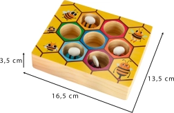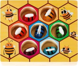 Izobraževalna igra Čebelji sat Montessori spodbuja razvoj motoričnih spretnosti in samostojnosti otrok. Vsebuje podlago iz masivnega lesa in sedem barvitih čebel, ki jih otroci postavljajo v ustrezne odprtine s priloženo rdečo plastično pinceto.