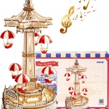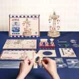 Uživajte v čarobnosti zabaviščnega parka doma s to podrobno 3D sestavljanko glasbene skrinjice – padalski vrtiljak. Model ponuja motorski pogon, LED osvetlitev, ključno/tapno upravljanje gibanja in zvoka ter predvaja romantično melodijo Falling Flower. Čaka vas 184 natančno izrezanih kosov, zahtevna težavnost in impresiven rezultat, ki ustvari vzdušje zahvaljujoč prosojnim oknom in trem svetlobnim točkam.