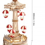 Ta dovršena 3D lesena sestavljanka je navdihnjena s klasičnim padalskim stolpom iz zabaviščnega parka. Šesterokotna osnova in stranska prosojna okna spuščajo toplo svetlobo, ki poudari edinstveno atmosfero. Vrtiljak poganja baterijski motor in osvetljujejo LED lučke, pri čemer tapno upravljanje omogoča ločeno vodenje gibanja in zvoka.