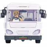 Doživite dogodivščine iz Pontypandyja z ikoničnim vozilom – Trevorjevim avtobusom iz serije Gasilec Sam. Model dolžine 21 cm ponuja realistične funkcije: odpirajoča se vrata in streho, pokrov motorja, ki se odpre z učinkom plamenov ob trku, ter figurico Trevorja z dodatki. Idealna igrača za otroke od 3 let naprej.