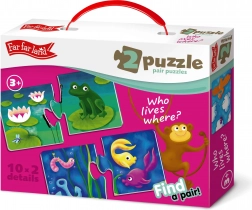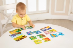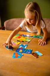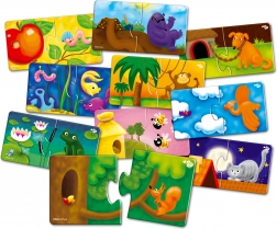 Uganka Državice Daljne Dežele je idealna poučna igrača za otroke od treh let naprej. Ta komplet vsebuje 10 slikovnih ugank, od katerih se vsaka sestavlja iz dveh delov - na enem je živalica in na drugem njen dom. S to igro otroci spoznavajo različne vrste živali in njihova okolja, kar jim pomaga razviti sposobnost razvrščanja in kombiniranja.