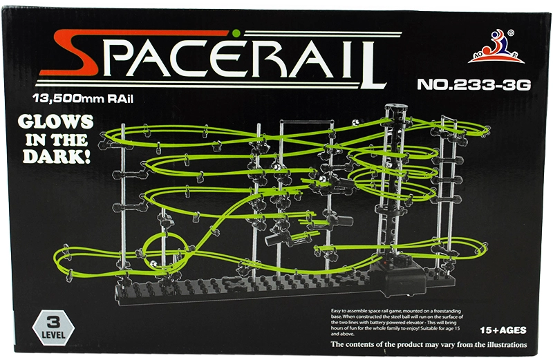SPACERAIL Glow je kreativni gradbeni komplet za ljubitelje tehnike, logike in konstrukcije. Iz trdnih plastičnih in kovinskih delov ter fosforescenčnega vlakna sestavite dovršeno krožno stezo na stabilni osnovi. Med gradnjo oblikujete ovinke, zanke in spuste ter prilagodite idealen prehod kroglic.