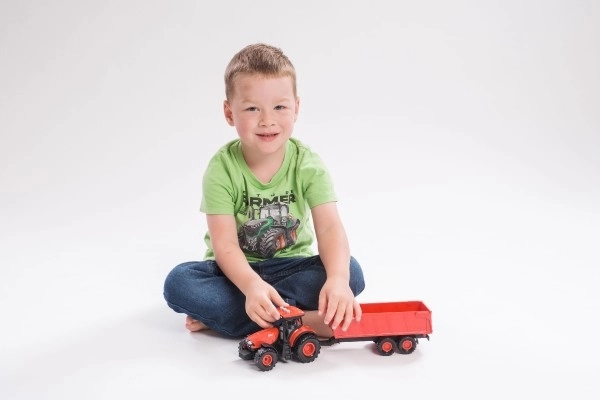 Odkrijte svet kmetijske tehnike s traktorjem modela Zetor, ki je zasnovan za maksimalno zabavo s svojimi realističnimi funkcijami. Ta traktor ne samo izgleda kot pravi, ampak tudi oddaja resnične zvoke in ima funkcionalne luči. Prikolico je mogoče enostavno odklopiti, kar omogoča spremenljivo igro in razvoj domišljije.