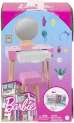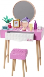 Razširite igralni svet BARBIE s stilnim kompletom pohištva in dodatkov s toaletno mizico, ki navdihuje neskončne zgodbe. Vključuje realistične podrobnosti in tematske dodatke za kreativno igro, nego videza in stiliranje. Lutke niso priložene.