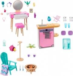 Komplet je poln barvitih podrobnosti in miniaturnih dodatkov, ki spodbujajo fino motoriko, igranje vlog in domišljijo. Odlično se prilega hiški BARBIE (ni priložena) in ga je mogoče kombinirati z drugimi temami, kot sta kuhinja ali taborjenje.