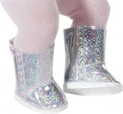 Srebrni škornji z učinkovitim leskom punčki dodajo stil za vsako zimsko pustolovščino.