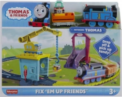 Podoživite priljubljene zgodbe s kompletom Tomaž in prijatelji z žerjavko Carly in hitrim vozilom Sandy. Motorizirani Tomaž vozi po popolni krožni progi, žerjavka Carly s kavljem naklada tovor in malo lokomotivo, tobogan pa vrača Sandy nazaj k žerjavki. Združljivo z večino plastičnih prog Thomas & Friends (razen lesenih). Idealno za predšolske otroke od 3 let.