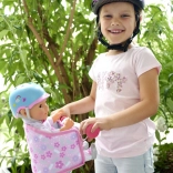 Stilski kolesarski sedež za punčke NEW BORN BABY z vgrajenim varnostnim pasom punčko zanesljivo drži na mestu. Zahvaljujoč mehkimi tekstilnim stranicam, odstranljivim trakcem na ježka in vzdržljivi izvedbi ga zlahka pritrdite na otroško kolo ali skiro. Idealno za punčke 30–43 cm, s čudovitim cvetličnim dizajnom in okolju prijazno embalažo.