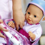 Vgrajen varnostni pas z enostavnim zapenjanjem punčko drži stabilno in udobno tudi pri daljši vožnji.