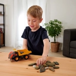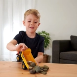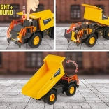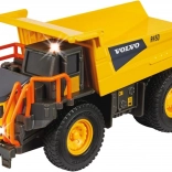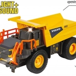Licenčni VOLVO prekucnik brez motorja s svetlobnimi in zvočnimi funkcijami. Kabina je izdelana iz kovine. Mehke gumijaste pnevmatike zlahka premagajo zahtevne površine na gradbišču. Premišni deli: pokrov motorja in prekucna kesona. Dolžina: 20 cm.