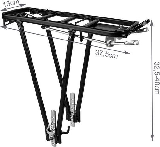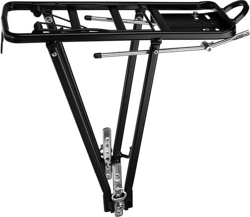 Vzdržljivost in stabilnost: Nosilec je izdelan iz trpežnega aluminija, kar zagotavlja dolgo življenjsko dobo in stabilnost pri prevozu predmetov. Maksimalna nosilnost tega modela dosega do 35 kg, kar omogoča udoben prevoz polno naloženih kolesarskih torb.