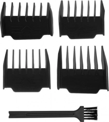 Vgrajena 5-stopenjska regulacija rezila in 4 glavnični nastavki (3/6/9/12 mm) za popolno urejanje dlake.