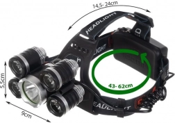 Zmogljiva naglavna svetilka s 5 LED CREE T6 diodami ponuja 4 načine svetenja, nastavljiv kot 90° in udoben elastičen trak. Napajanje zagotavljata 2 akumulatorja 6800 mAh, v paketu pa ne manjkata omrežni in avtomobilski polnilec – idealno za pohodništvo, kolesarjenje, domača opravila in nujne primere.