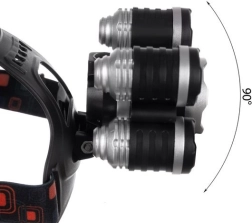 Trije sprednji moduli s 5× CREE T6 zagotavljajo širok in osredinjen snop. Glavo lahko nagnete do 90° za natančno usmerjanje.
