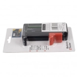 Pametna zasnova z drsnim krakom olajša testiranje različnih velikosti – od AA/AAA preko C/D, 9V blokov do gumbnih baterij. Kompaktno ohišje iz trpežne plastike je lahko in gre v žep, zato imate tester vedno pri roki doma, v pisarni ali na poti.