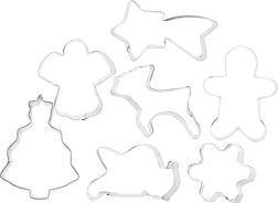 Praktičen komplet 7 kovinskih modelčkov iz nerjavečega jekla za preprosto peko božičnega peciva. Nudi oster rez, udoben profiliran rob in 7 priljubljenih oblik. Idealno za medenjake, piškote in fondant – komplet je vzdržljiv in enostaven za čiščenje.
