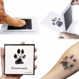 Uporaba je zelo enostavna in hitra: položite kartico, namestite blazinico s črnilom navzdol in nežno pritisnite okončino. Črnilo je primerno za več poskusov, zato lahko ustvarite več različic in izberete najboljšo. Zahvaljujoč univerzalnim meram lahko naredite odtise dojenčkov in majhnih živalskih tačk.