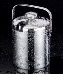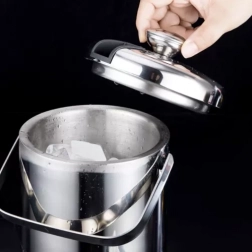 To nerjavno jekleno vedro za led s kompletom dodatkov je nepogrešljivo za ljubitelje ohlajenih pijač. Zahvaljujoč dvojni steni led ostane dlje zamrznjen, prostornina 1,3 l pa omogoča strežbo ledenih kock na katerem koli srečanju. Ergonomski ročaj olajša prenašanje vedra z vsebino.