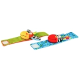 Veseli vzorci, večbarvna ušeska in šumeči elementi podpirajo razvoj vida in tipa ter pomagajo ohranjati otrokovo pozornost.