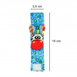 Vgrajena ropotuljica v glavici živalice oddaja prijeten, nemoteč zvok, ki motivira dojenčka k gibanju in odkrivanju lastnih rokic.