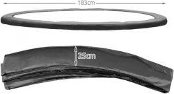 Zaščitni rob je univerzalen in ustreza večini trampolinov s premerom 180–183 cm. Namestitev opravite v trenutku brez orodja – praktični elastični trakovi zagotovijo trdno pritrditev. Za pravilen izbor zadostuje, da izmerite zunanji premer svojega trampolina.