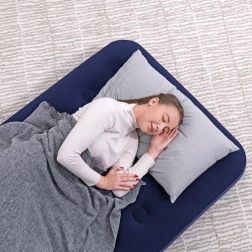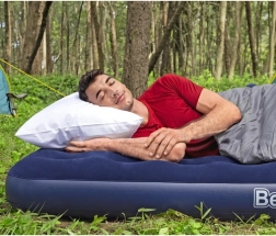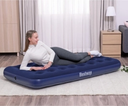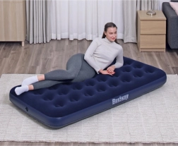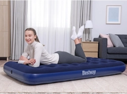 Uživajte v udobnem spancu kjerkoli. Enojna napihljiva postelja BESTWAY združuje trpežen PVC in prijeten velur za udobno ležanje brez drsenja posteljnine. Notranja konstrukcija coil-beam enakomerno razporeja težo in zagotavlja stabilnost skozi vso noč.
