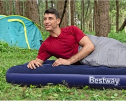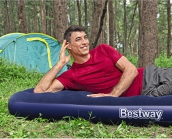 Praktičen napihljiv vzmetnik za eno osebo znamke BESTWAY je idealen za kampiranje, v šotor ali kot udobno ležišče za goste. Odporen PVC z mehko velurjem prevlečeno površino zagotavlja udobje in dolgo življenjsko dobo, medtem ko valovite/coil-beam komore nudijo stabilnost in oporo. Zahvaljujoč hitrospustnemu ventilu z blokado vzmetnik hitro napihnete in izpraznite ter ga enostavno očistite.