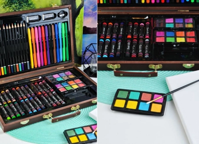 Slikarski komplet 81 delov v lesenem kovčku