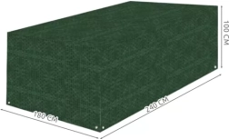 Prevleka za vrtno pohištvo nudi popolno zaščito pred vremenskimi vplivi. Izdelana je iz odpornega polietilena z gramaturo 100 g/m2, kar zagotavlja dolgo življenjsko dobo. Primerna za pohištvo, kot sta miza in do 6 stolov, ter za drugo vrtno opremo, kot so gugalnica, klop ali žar.