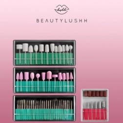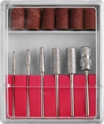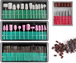 Komplet nastavkov za vrtalnik je popolna rešitev za nego nohtov in za natančno delo pri ročnih delih. Vsebuje različne vrste rezkarjev iz kamna, diamantnega prahu in filca, ki zagotavljajo natančne prilagoditve in visok standard higiene.