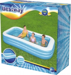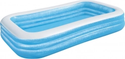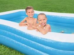 Napihljiv bazen Deluxe Blue z dimenzijami 305 x 183 x 56 cm je idealen za poletno osvežitev na vrtu. Narejen je iz trpežnega PVC materiala, ki nudi udobje in varnost zahvaljujoč širokim stranskim stenam.