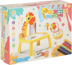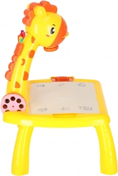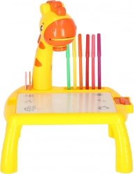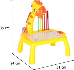 Odkrijte zabaven način, kako otroke naučiti risati! Rumeni žirafji projektor projicira slike na papir, da jih lahko otroci preprosto obrišejo. V kompletu so barvni flomastri, trije izmenljivi koluti z motivi in brisljiva podloga. Odlična pomoč pri razvoju ustvarjalnosti, fine motorike in natančnosti – idealno za otroke od 3. leta dalje.