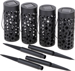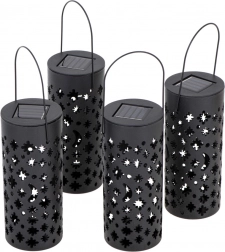 V svoj vrt vnesite čarobno vzdušje s kompletom 4 sončnih LED latern. Brez kablov, samodejni vklop ob mraku zahvaljujoč senzorju, varčno delovanje in dekorativni svetlobni vzorci zvezd in lune spremenijo poti, gredice ali teraso v prijeten kotiček.