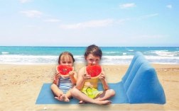 Napenljiva plažna podloga z naslonom – svetlo modra