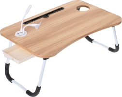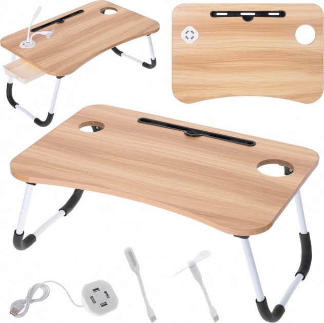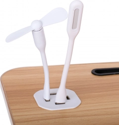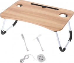 Uživajte v maksimalnem udobju pri delu ali zabavi z našo zložljivo mizico za prenosnik z vgrajenim USB-panelom. Mizica omogoča udobno namestitev prenosnika in preprečuje njegovo pregrevanje. Izkoristite tudi ventilator in lučko z USB-priklopom za prijetnejše delo.