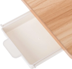 Zahvaljujoč vgrajenemu predalčku imate tablico ali telefon vedno pri roki. Ne manjka niti odprtina za skodelico, kamor lahko odložite svojo jutranjo kavo. Naravna lesena plošča skupaj s kovinskimi nogami zagotavlja stabilnost in enostavno vzdrževanje.