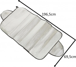 Univerzalna zaščita za sprednje ali zadnje steklo ščiti vozilo pred soncem, UV-sevanjem, ivjem in snegom. Enostavno se namesti z zapiranjem stranskih robov v vrata, je lahka, zložljiva in izdelana iz trpežnega nepropustnega materiala s termoizolacijsko plastjo.