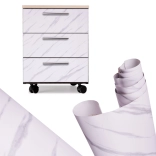 V nekaj trenutkih dodajte interierju razkošen videz naravnega kamna. Samolepilna dekorativna folija z motivom belega marmorja Jazz prekrije praske, odrgnine in barvne neenakosti ter hkrati zaščiti površino. Zahvaljujoč kanalskemu lepilu se lepi enostavno, brez zračnih žepov, v prvih minutah pa omogoča tudi manjše korekcije postavitve.